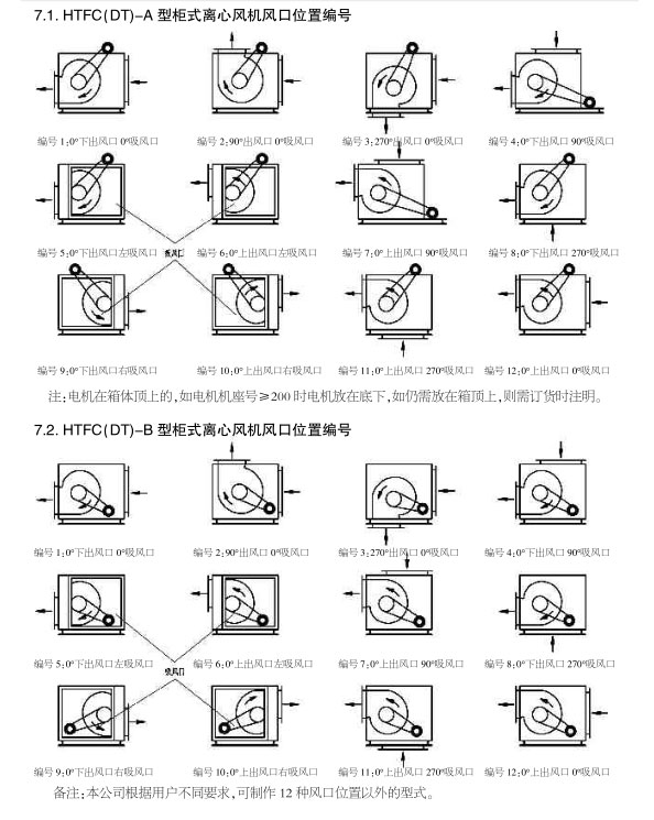 4. HTFC系列低噪声柜式离心风机箱为B型,电机装在箱体内,用于通风换气。