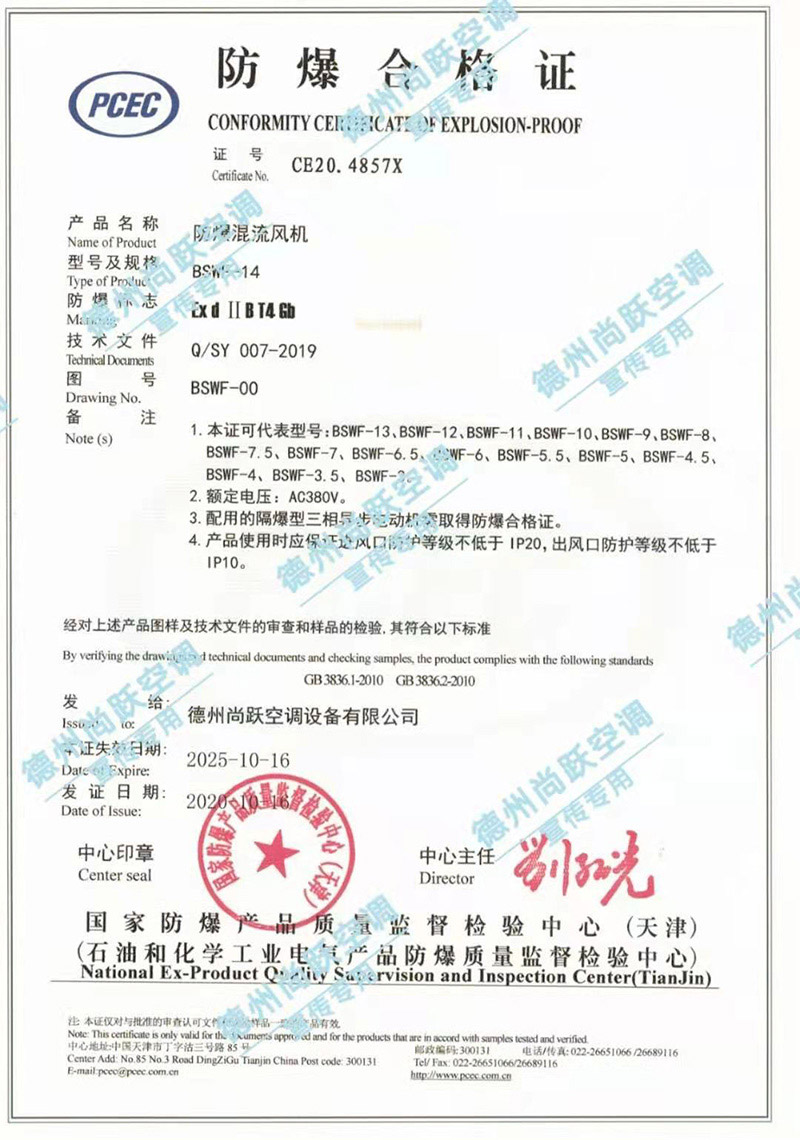 我公司全系列产品均可根据用户及设计院对防爆级别的要求制作为防爆产品,防爆产品均已通过防爆产品质量监督检验中心检验合格,并配发整机防爆合格证书及检测报告。