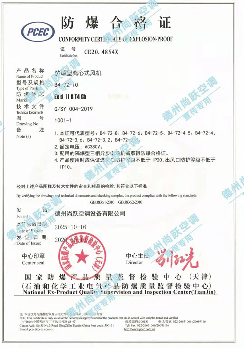 我公司全系列产品均可根据用户及设计院对防爆级别的要求制作为防爆产品,防爆产品均已通过防爆产品质量监督检验中心检验合格,并配发整机防爆合格证书及检测报告。