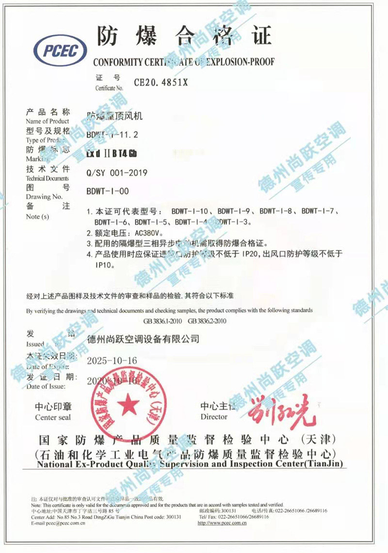 我公司全系列产品均可根据用户及设计院对防爆级别的要求制作为防爆产品,防爆产品均已通过防爆产品质量监督检验中心检验合格,并配发整机防爆合格证书及检测报告。